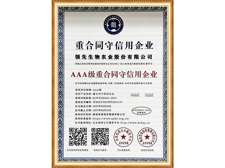 AAA級重質量守信用企業(yè)