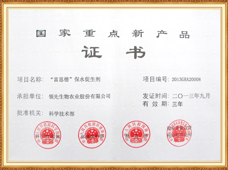 施利康牌含腐植酸水溶肥料—第十八屆中國楊凌農博會“后稷獎”
