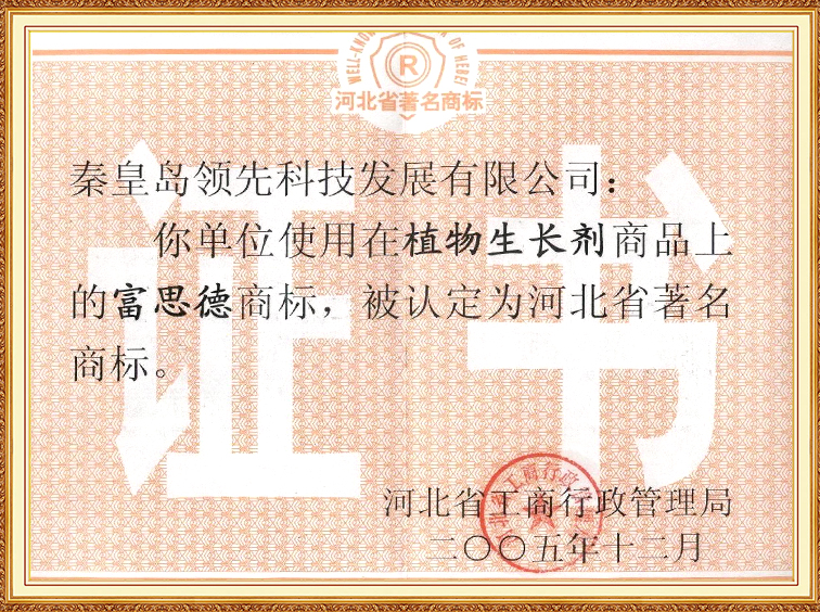 富思德牌微生物菌劑—河北省名牌產(chǎn)品證書